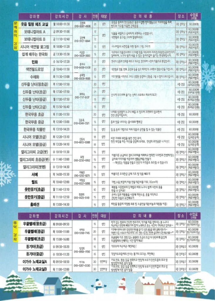2026년 1분기(1월~3월) 풍산동(풍동) 주민자치센터 문화강좌 수강생을 모집합니다.